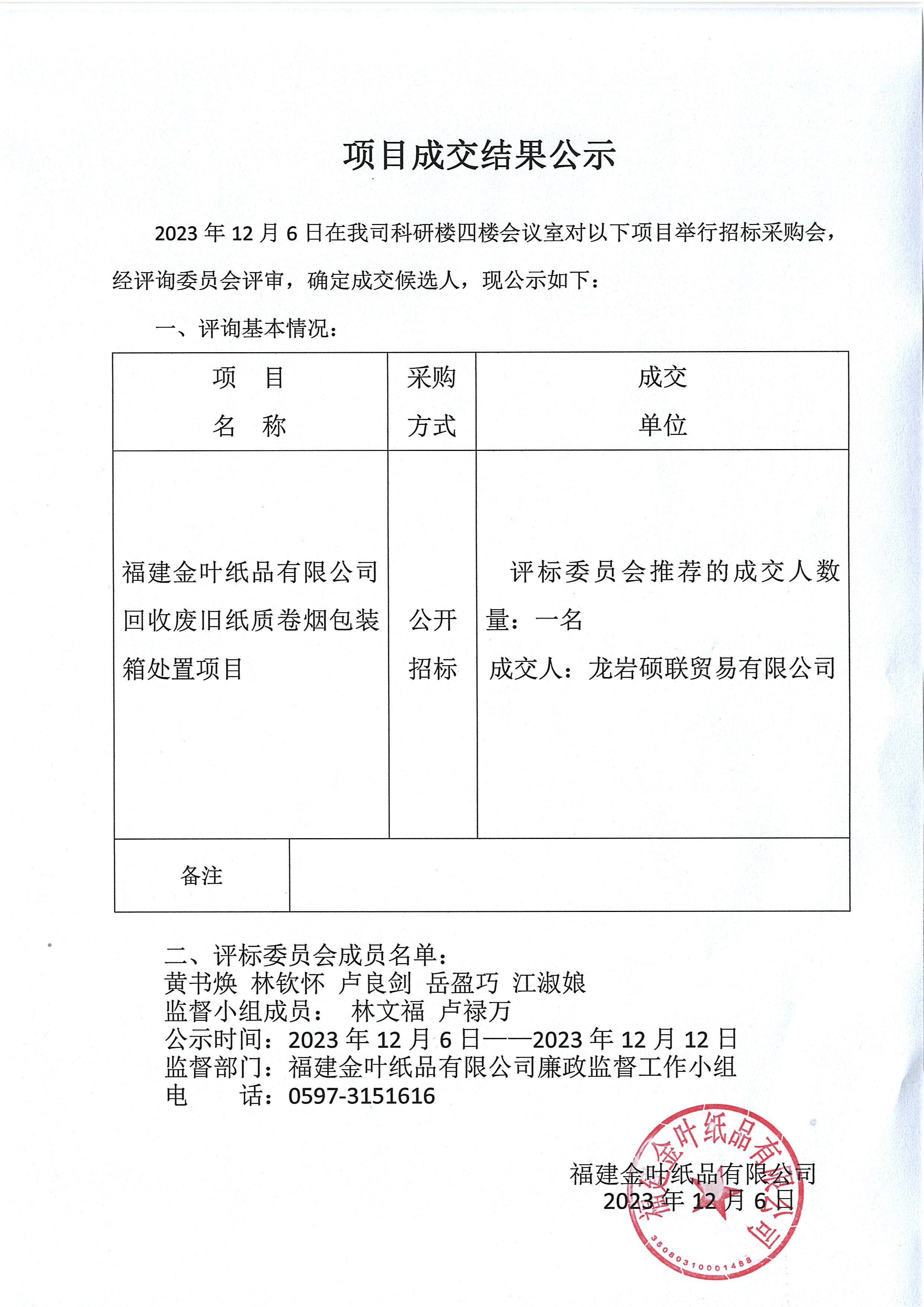 項(xiàng)目成交結(jié)果公示