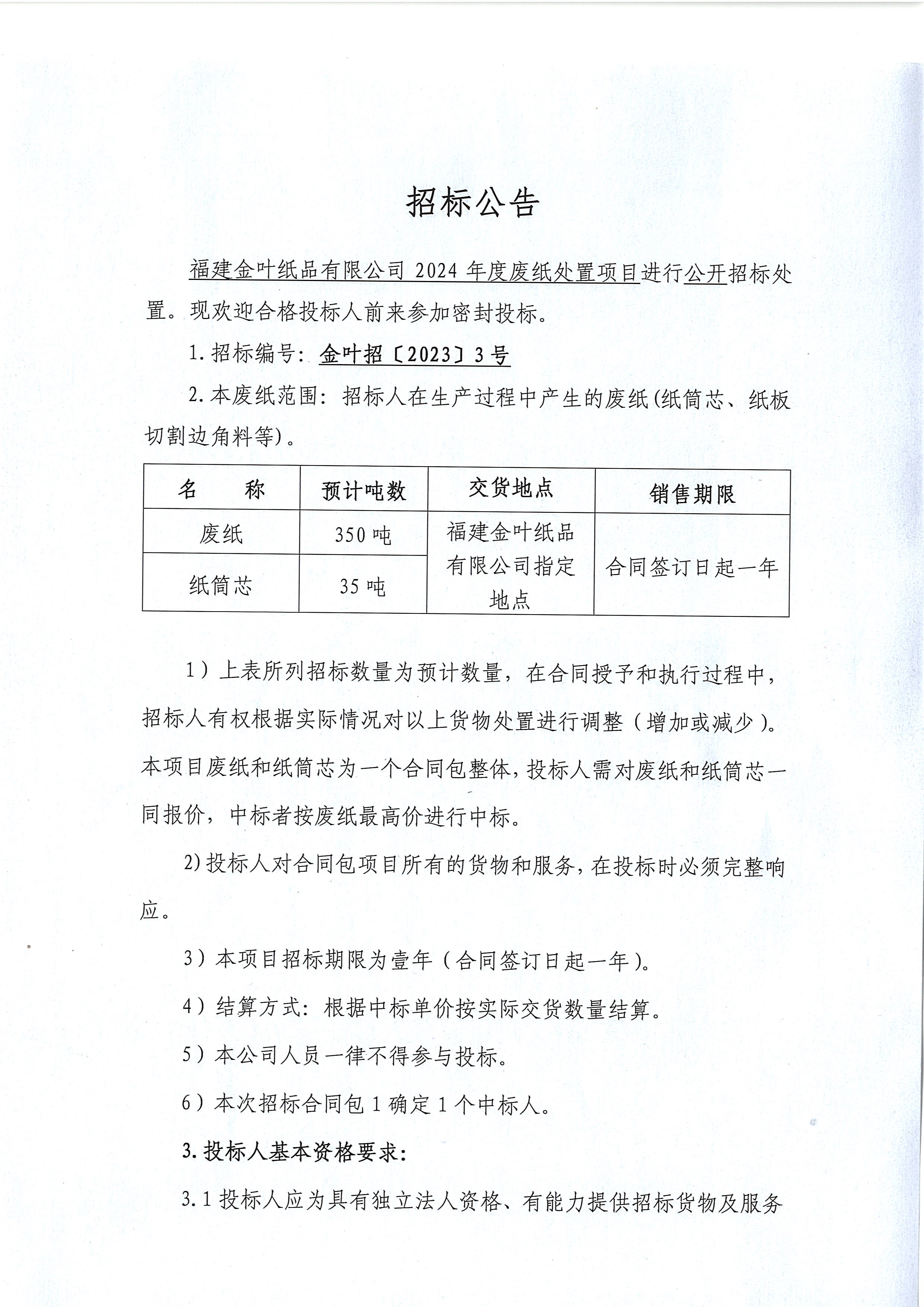 福建金葉紙品有限公司2024年廢紙?zhí)幹庙椖?/h1>