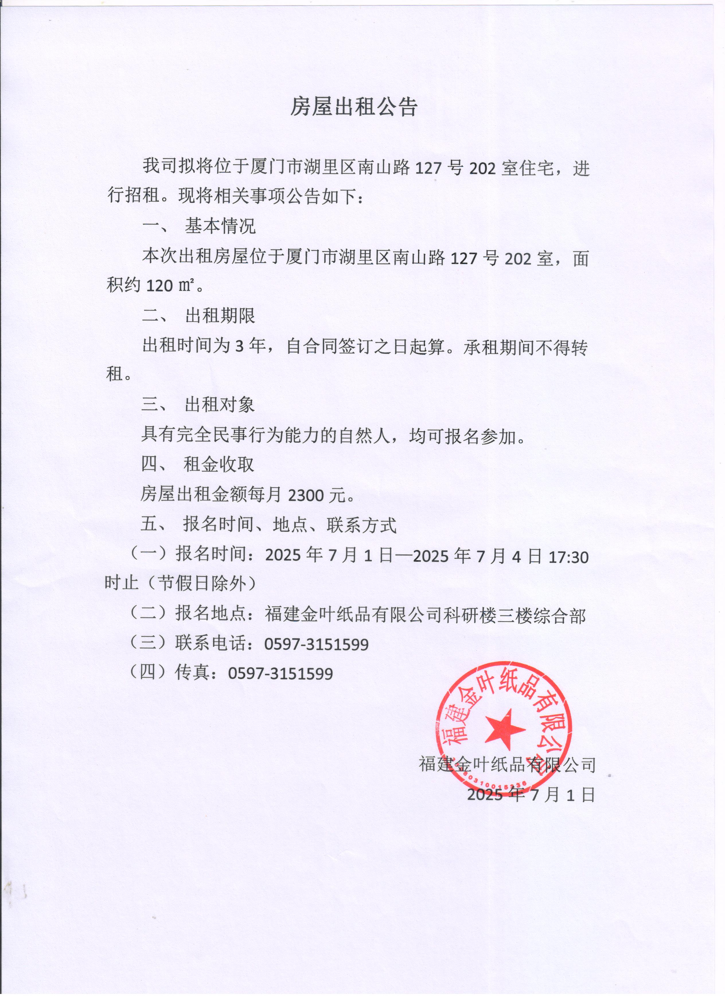 房屋出租公告